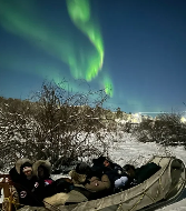 Enjoy fresh bannock, and hot beverages throughout the evening. If you missed the aurora during the dogsled ride, there is still a chance to catch them on the lakeshore.